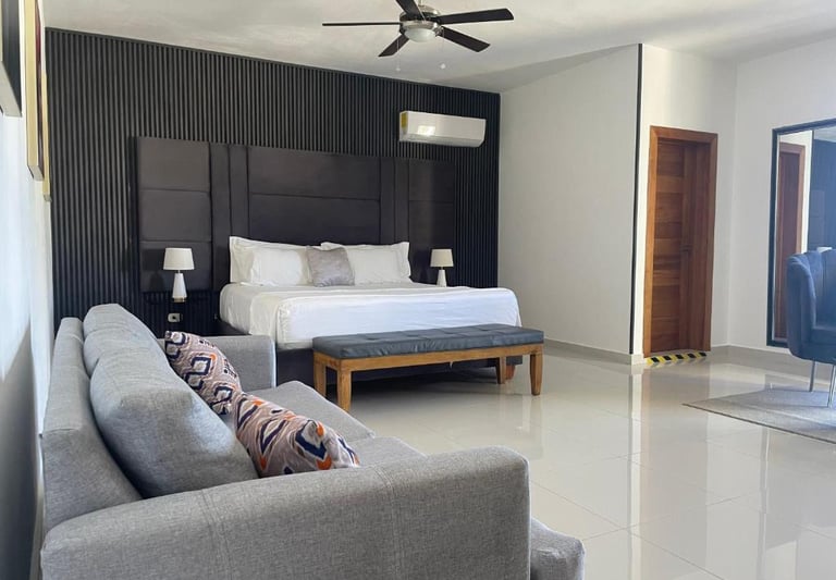 Explore this chique boutique hotel on the beautiful North Shore of the Dominican Republic in Puerto Plata. Highly praised by travelers for its cleanliness, excellent service, modern amenities, and tranquil ambiance. Situated in a quiet gated community only 7 minutes from the beach and under 15 minutes from the city center.